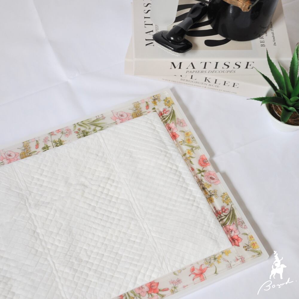 トレーにペットシーツをセットし、枠をはめ込むだけの簡単設計。
