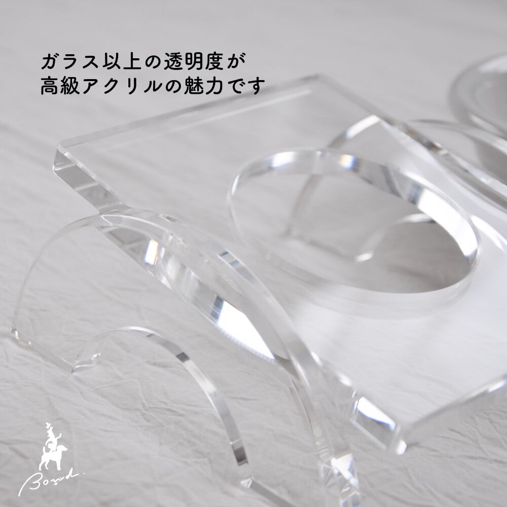 また、アクリルはガラスに比べ割れにくく、長期間使用しても劣化しにくい素材です。そのため、見た目の美しさを保ちながら、耐久性にも優れています。