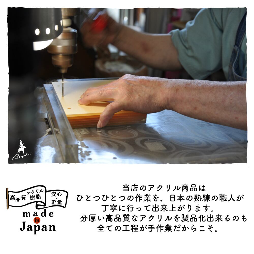 また、アクリルはガラスに比べ割れにくく、長期間使用しても劣化しにくい素材です。そのため、見た目の美しさを保ちながら、耐久性にも優れています。