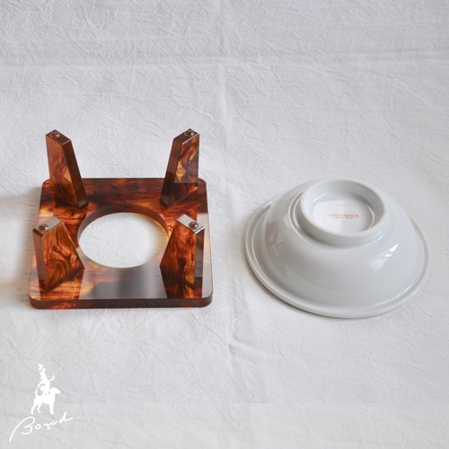 安定感抜群の4つ足スタンドに、磁器皿を置いて使う
