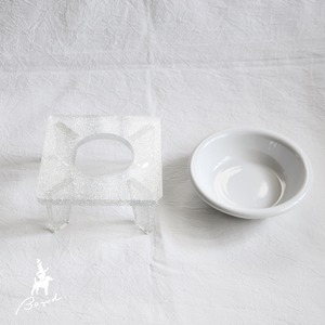 安定感抜群の4つ足スタンドに、磁器皿を置いて使う