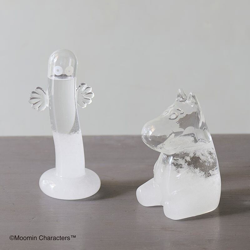 ガラスで出来たムーミンの中に、天候によって変化する液体が入っています。